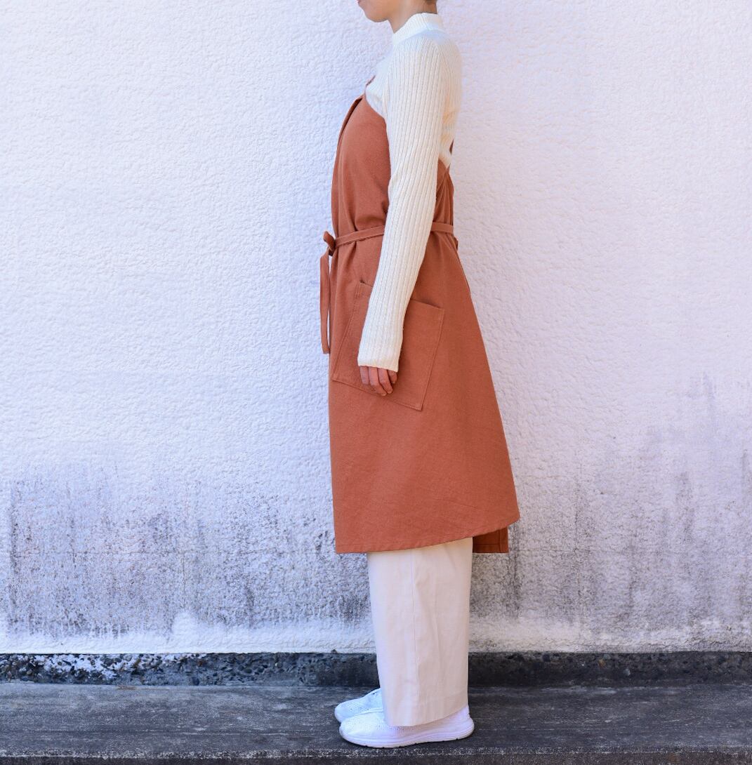 綿麻のしっかりとした生地で、流線形のワンピースのようなデザインです。